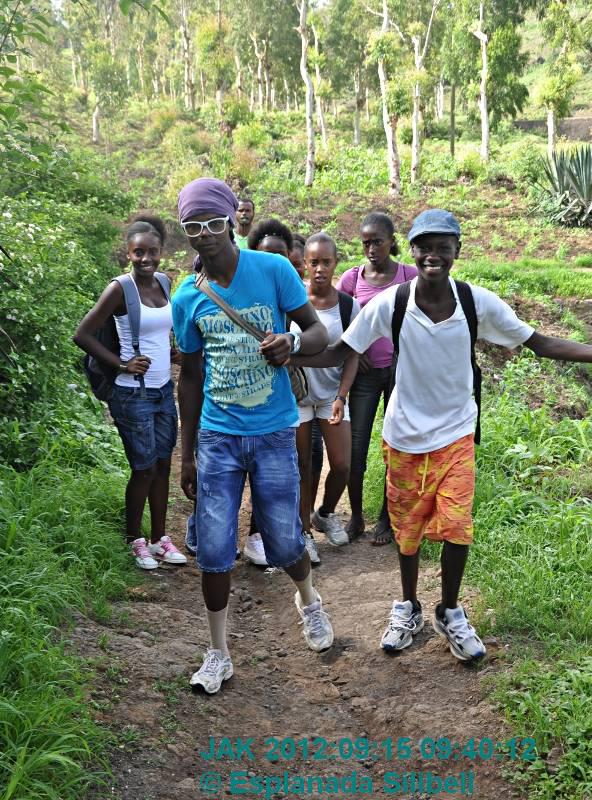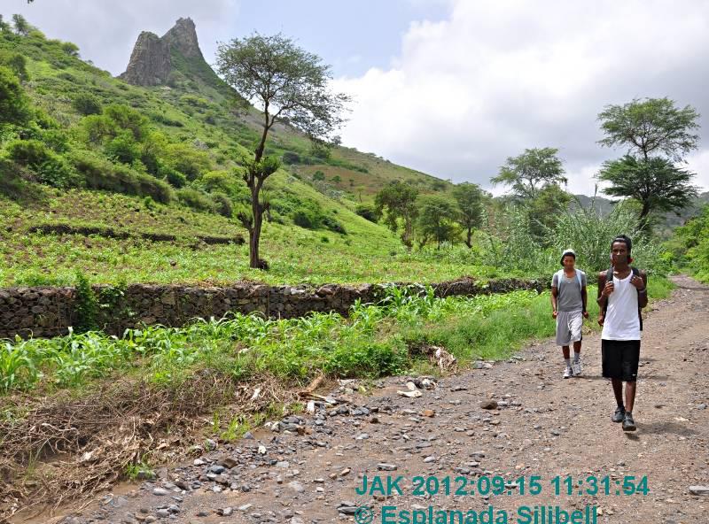 Vom Stadtteil Nhagar geht es erst hinunter zum Poilon, dem großem Kapokbaum. Dann weiter im fruchtbaren Tal der Boa Entrada bis zum Aufstieg nach Pingo Chuva. Sie bleiben dann oben auf der Höhe von Saltos de Cima bis Sie in die Ribeira de Flamengos absteigen. Bei Capela / Casa Grande stoßen Sie auf die Asphaltstraße und nehmen dort am einfachsten den nächsten Hilux oder Hiace
