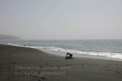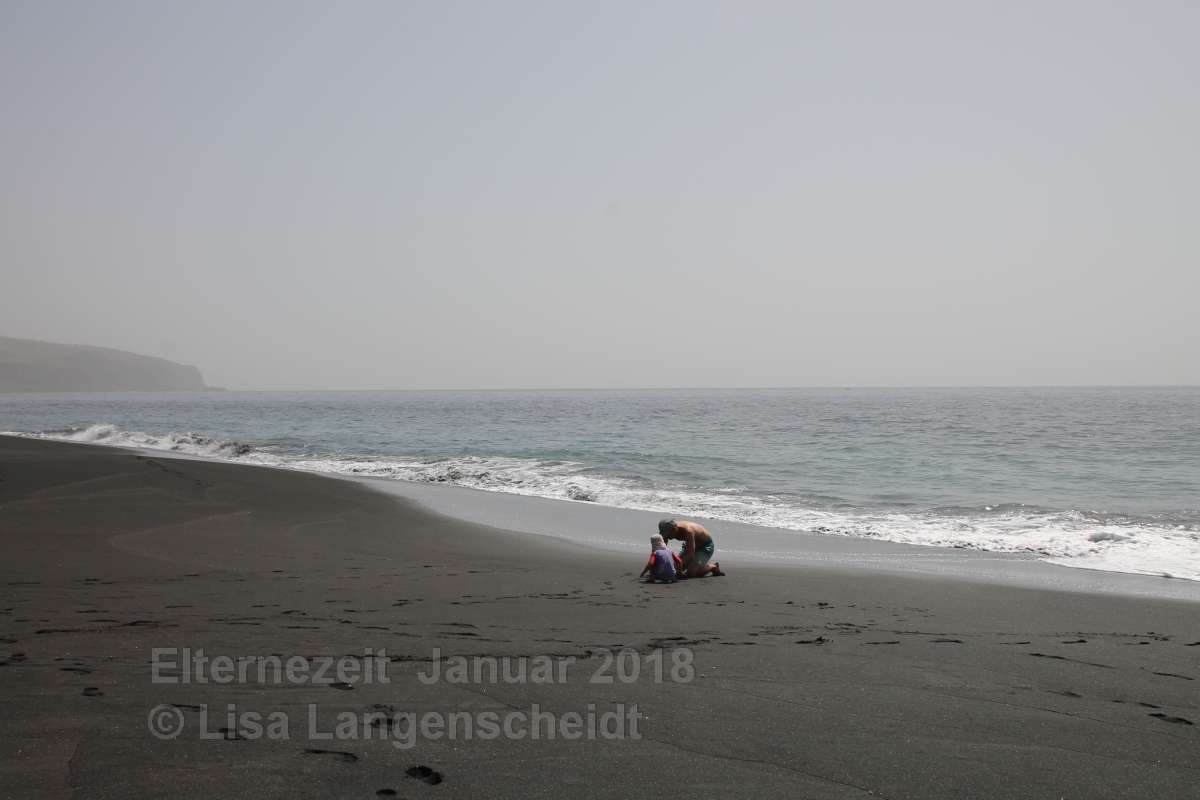 Ohne die Großeltern ging es für uns weiter nach Fogo. Wenn wir von der gebirgigen und grünen Landschaft Santiagos schon begeistert waren, dann toppte Fogo diesen Eindruck für uns noch! Schwarze Strände, grüner Norden, hohe Berge am Krater und über allem thront der beeindruckende Pico do Fogo! Drei Nächte verbrachten wir im Tortuga B&B. Diese tolle Unterkunft mit traumhaftem Garten liegt einen strammen Strandmarsch entfernt von der schönen Inselhauptstadt Sao Filipe am breitesten schwarzen Sandstrand, den wir je gesehen hatten. Gastgeber Roberto bekochte uns abends ganz wundervoll (während das Baby schon ins Bett gebracht worden war und die Große mit leckeren selbstgemachten Nudeln glücklich wurde). So hatten wir Eltern neben dem Geschmackerlebnis verschiedenster Fischsorten auch noch entspannte Abende! Wir unternahmen eine Inselrundfahrt mit Edmar, der sogar Englisch sprach und überzeugten uns von der Schönheit der Lavainsel.
