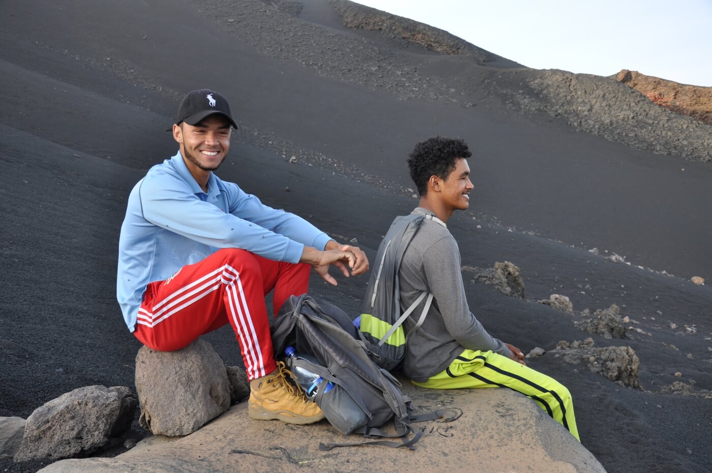 Sie besteigen den Pico de Fogo bis zum höchsten Punkt, queren und steigen über den Pico Pequeno -Ausbruch von 1995 +2014