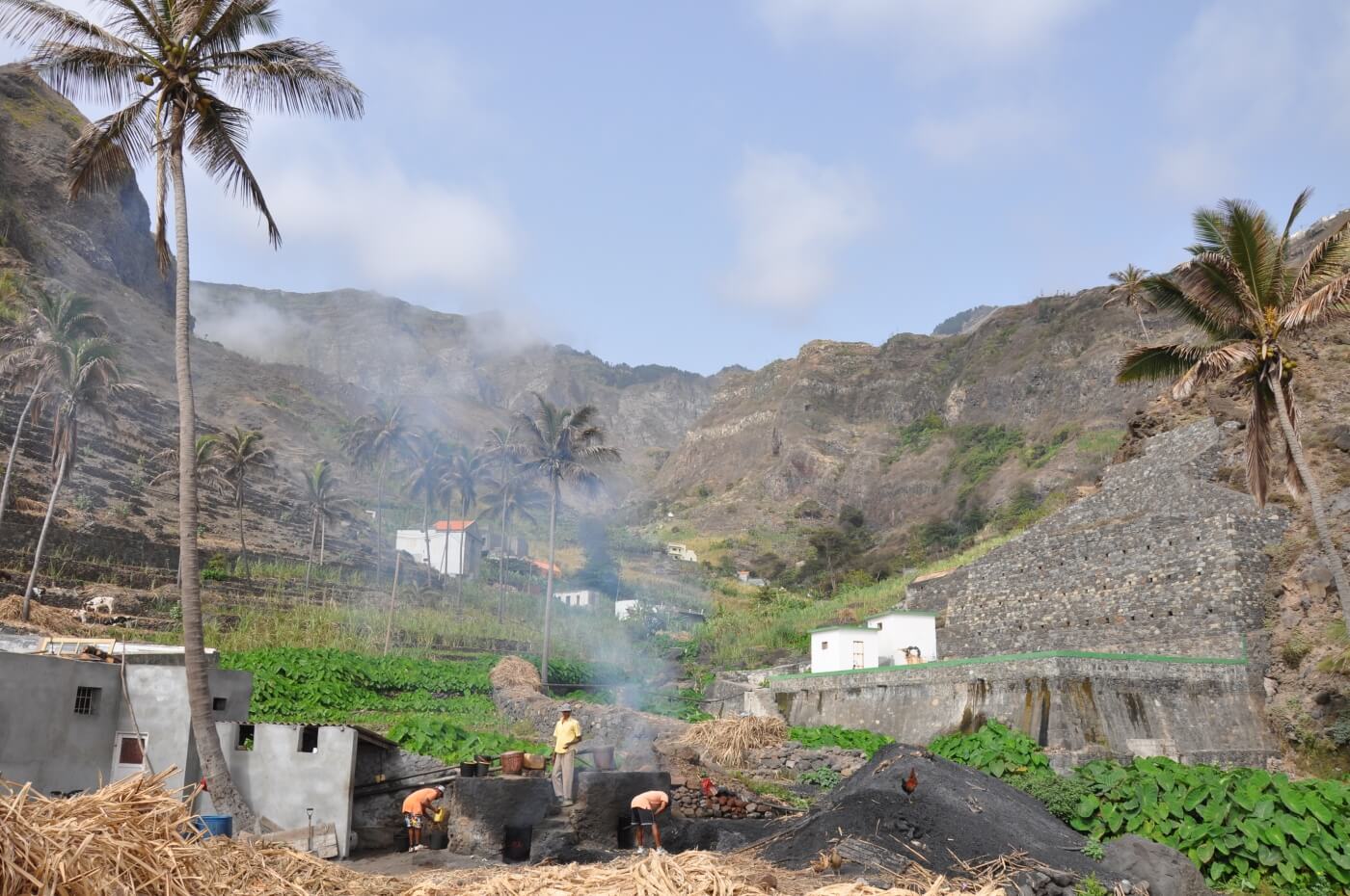 Entlang der Küste fahren Sie mit dem Aluguer Collectivo (Sammeltaxi) auf der 2009 eröffneten Asphaltstraße nach Porto Novo. Mit der Fähre geht es über den Kanal wieder zurück nach Mindelo. Weiterflug nach Santiago. Taxifahrt durch das Inselinnere von Santago an den Palmenstrand von Tarrafal.