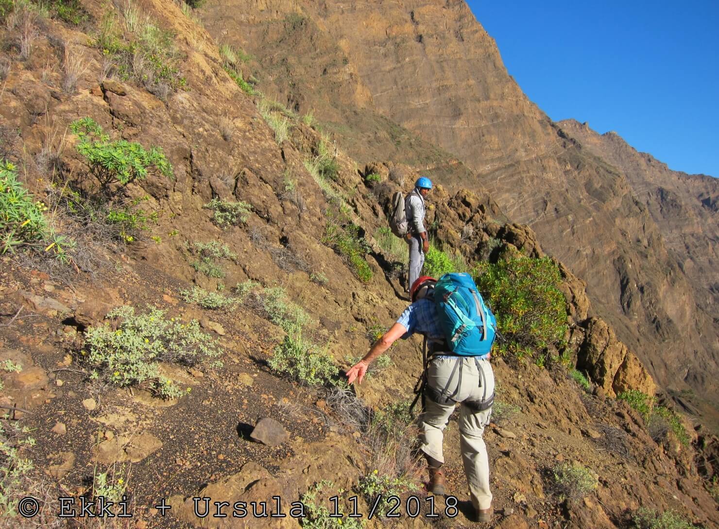 Zunächst leicht ausschreitende geht es fast eben über losen Lavagrus zum Ausgangspunkt der Tour. Der Weg zieht sich zunehmend steiler bergan mit immer wieder neuen, atemberaubenden Ausblicken über die Caldeira. Im oberen Drittel wid es noch steiler und Sie steigen, klettern nun über grosse Felsbrocken, Felsrippen welche sicheren Halt für die Füße bieten stetig bergan, bis Sie schließlich oben angekommen in den noch rauchenden Schlund des Feuerberges blicken.