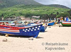 Am Rande des expandierenden Fischerortes, liegt der einzige helle Palmenstrand der Kap Verden. Der feinsandige Strand und das tiefblaue Meer laden geradezu ein hier erholsame Badetage im Schatten der Palmen zu verbringen.