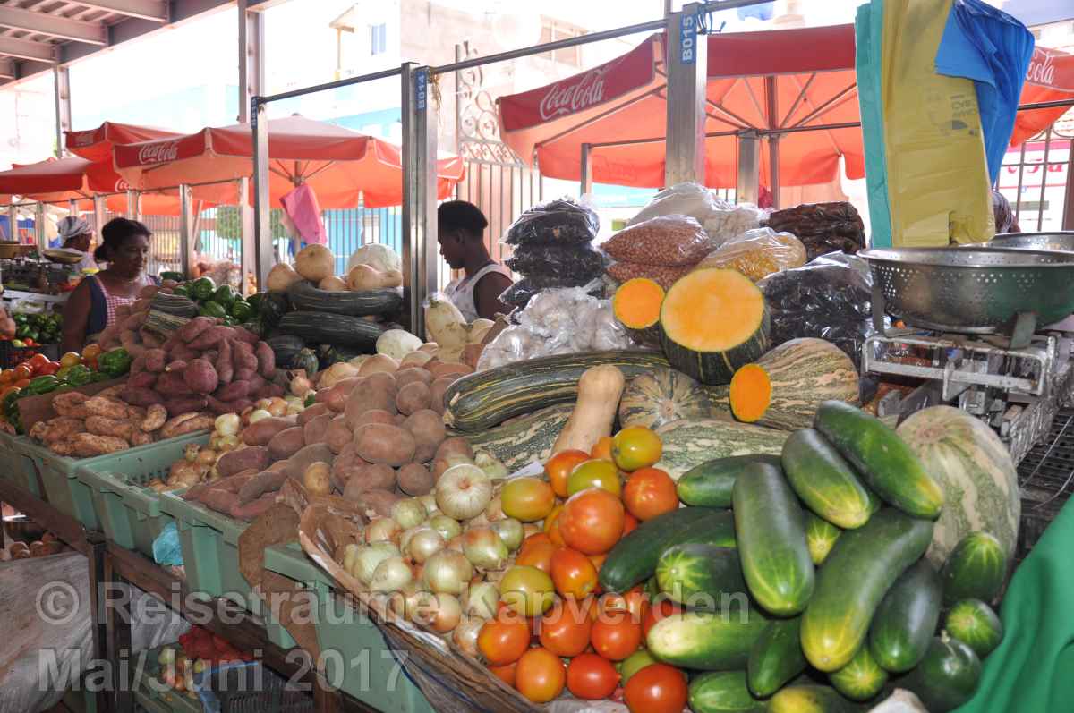 Dies ist der älteste Obst- & Gemüsemarkt der Stadt, auf dem viele Städter gerne einkaufen. Bedingt durch seine Funktion als Hautpstadt und die Kaufkraft der Großstädter und v.a. der ausländischen Diplomaten ist das Angebot gerade auf diesem Markt reichlich, da wird Praia mit allem beliefert, was die Landwirtschaft der ganzen Insel herzugeben vermag.