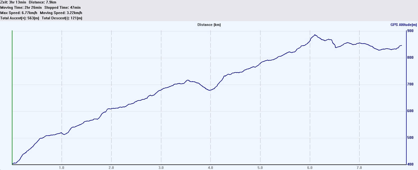 Höhen/Dauer: Aufstieg: +563m / Abstieg: -120m / Länge: 8km / Dauer: 2,5 - 3 Stunden