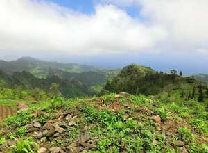 Von hier aus führ der Weg wieder nach unten. Auf schmalen Wegen geht es durch die Felder der Kapverdianer hinunter. Trittsicherheit ist gefordert, denn immer wieder liegen Steine oder Wurzeln auf dem steilen Weg bergab. Dennoch belohnt die Tour auf ganzer Stecke mit herrlichen Ausblicken und schattenspendenden Mangobäumen.