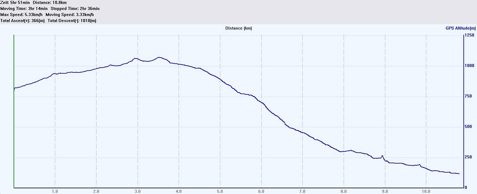 Höhen/Dauer: Aufstieg: +366m / Abstieg: 1018m / Länge: 10,8km / Dauer: 3,5-4 Stunden