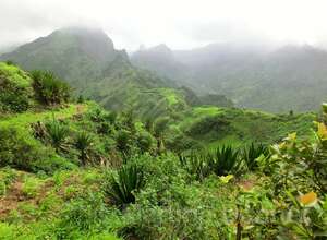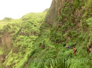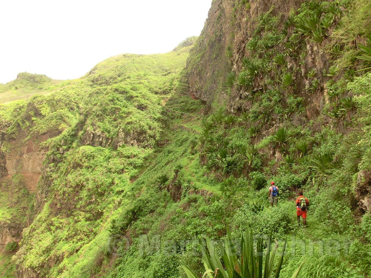 Gleich nach dem Start geht es steil bergauf. Oben angelangt geht es dann auf kurvigen Wegen sofort wieder hinab. Insgesamt folgen zwei weitere Steigungen, allerdings verläuft der Großteil der Wanderung bergab. Gesäumt ist der Weg meist von Algarven, welche meterhohe Blüten tragen, Limettenbäumen und "Língua-da-vaca"-Sträuchern. Zudem führt der Weg oft entlang oder durch Felder der Kapverder, welche dort größtenteils Süßkartoffeln und Mais anpflanzen. In der Ferne kann man auch die dazugehörigen Häuser und Dörfer entdecken, manchmal quert man das ein oder andere Haus auch direkt. Die komplette Wanderung belohnt mit tollen Aussichten. Nach etwa der Hälfte der Strecke gibt es aber eine ganz besondere Aussicht, denn man sieht die West-, Nord- und Ostküste auf einmal. Die Wanderung endet an der Hauptstraße.