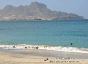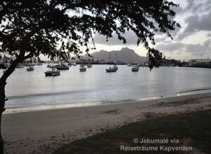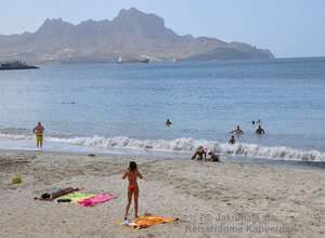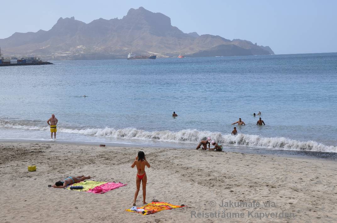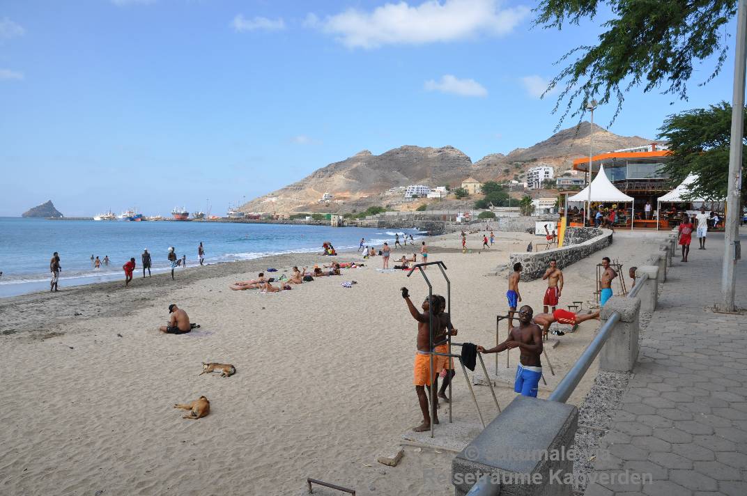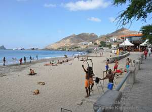 Am späten Nachmittag gehen wir zum beliebtesten Strand in Mindelo, nach Lajinha. Hier treffen sich jung und alt zum entspannen. Es gibt eine ganze Reihe von Strandbars, in denen man für wenig Geld erfrischende Getränke bekommt. Der ein oder andere nutzt die Zeit für ein weiteres Bad im Meer. Es reicht aber auch, einfach nur da zu sitzen und dem gemächlichen Treiben zu zuschauen. "Cabo Verde-no stress", so ist es überall zu lesen, und es ist tatsächlich so. Hier ist alles ein wenig unaufgeregter und weniger hektisch. Die Menschen, obgleich nach unseren Maßstäben arm, strahlen eine ansteckende Lebensfreude und Ausgeglichenheit aus, die man in unseren Breiten oft vermisst.