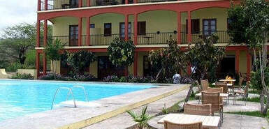 Das 3-Sterne Hotel liegt auf einer Landzunge oberhalb der Küste am Ortsrand von São Filipe. Und bietet eine schöne Aussenanlage mit großem Pool, und Bar
