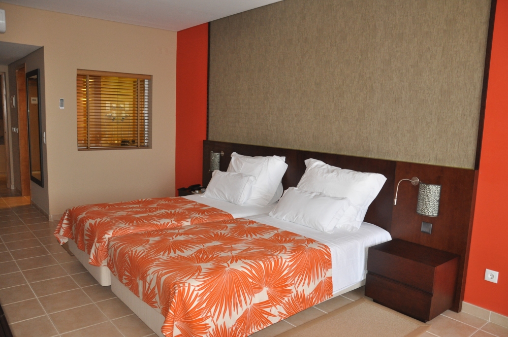 Unterbringung: Die ansprechenden Zimmer sind komfortabel und in modernem Stil dekoriert. Alle Zimmer verfügen über eine kleine Terrasse und sind mit Klimaanlage, Satelliten TV (inklusive portugiesische und internationale TV-Sender) mit LCD Bildschirm, Direktwahl-Telefon, Minibar und Haartrockner ausgestattet. Die Meerblickzimmer im neu erbauten Gebäudetrakt haben keinen Balkon.