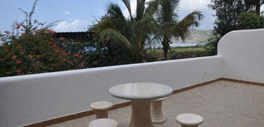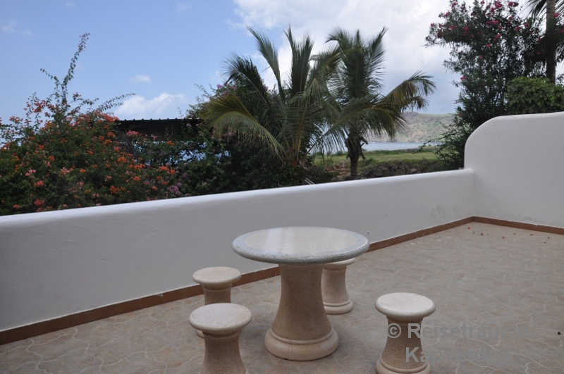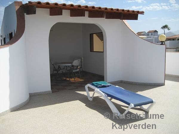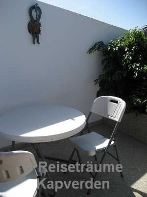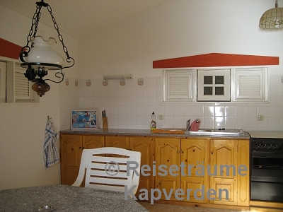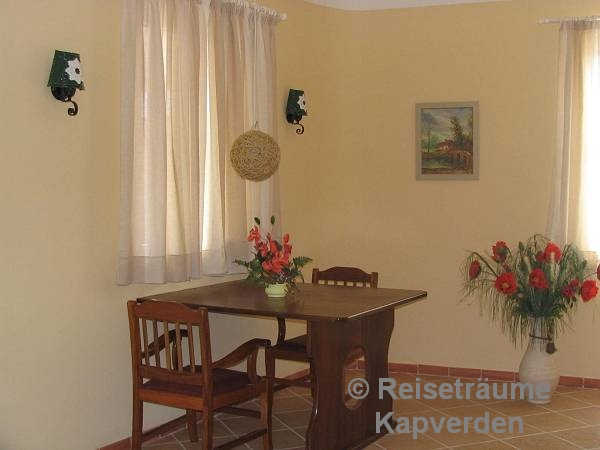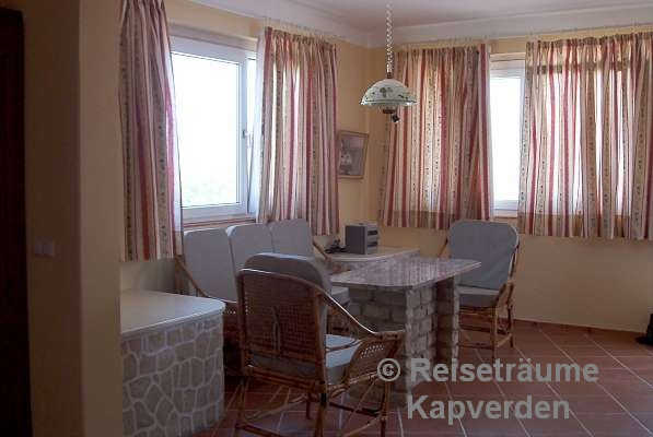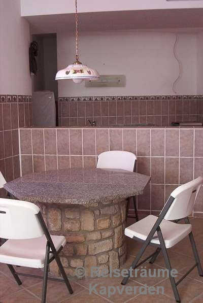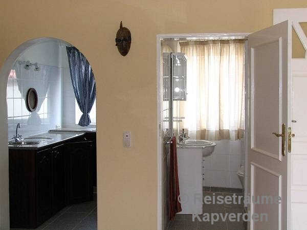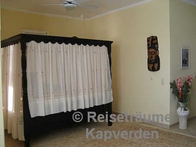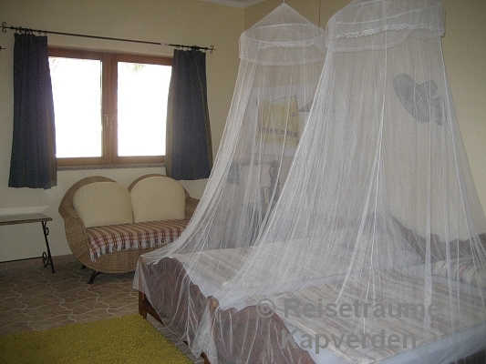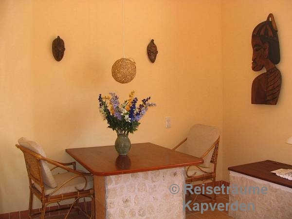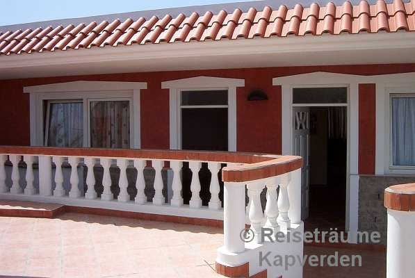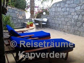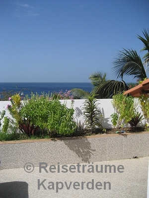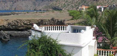Die liegt auf einer kleinen Felsenklippe am Meer und Sie können gleich morgens über die Badeleiter zum Schwimmen gehen vor dem Frühstück. Zum Palmenstrand von Tarrafal und zum Ortszentrum sind es gerade mal 10 Minuten zu Fuß.