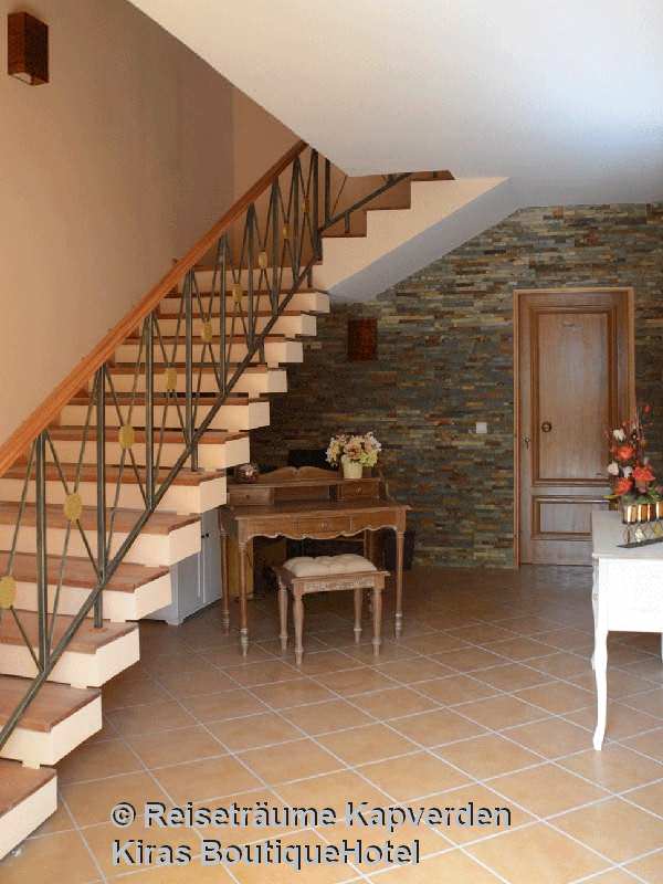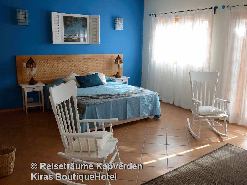 Unterbringung: Die geschmackvoll eingerichteten Zimmer verfügen über Dusche/WC, Deckenventilator, TV, Telefon, Internetzugang, Mini-Kühlschrank und Safe. Die Dekoration der Zimmer wurde von der jeweiligen Insel von Kap Verde - deren Namen es trägt - inspiriert, was sich eindeutig in der Verwendung von Farben / Möbel und Bilder wieder spiegelt.